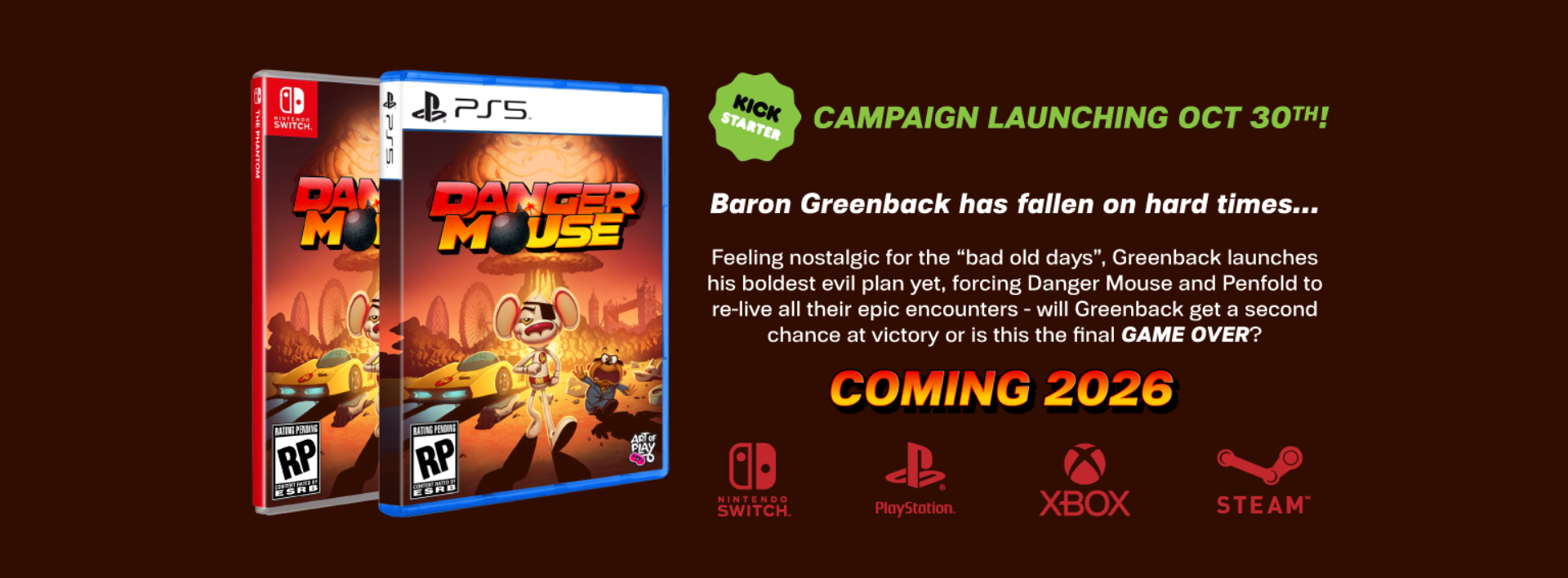 Danger Mouse: The Official Console Game sera disponible en version numérique sur PS4, PS5, Xbox, Switch/2 et Steam. Les éditions physiques sont prévues sur PS5 et Switch/2.